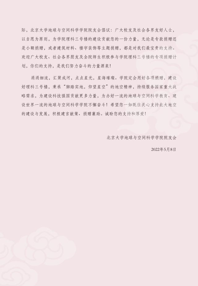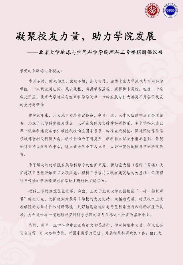 凝聚校友力量,助力学院发展——北京大学地球与空间科学学院理科三号楼捐赠倡议书